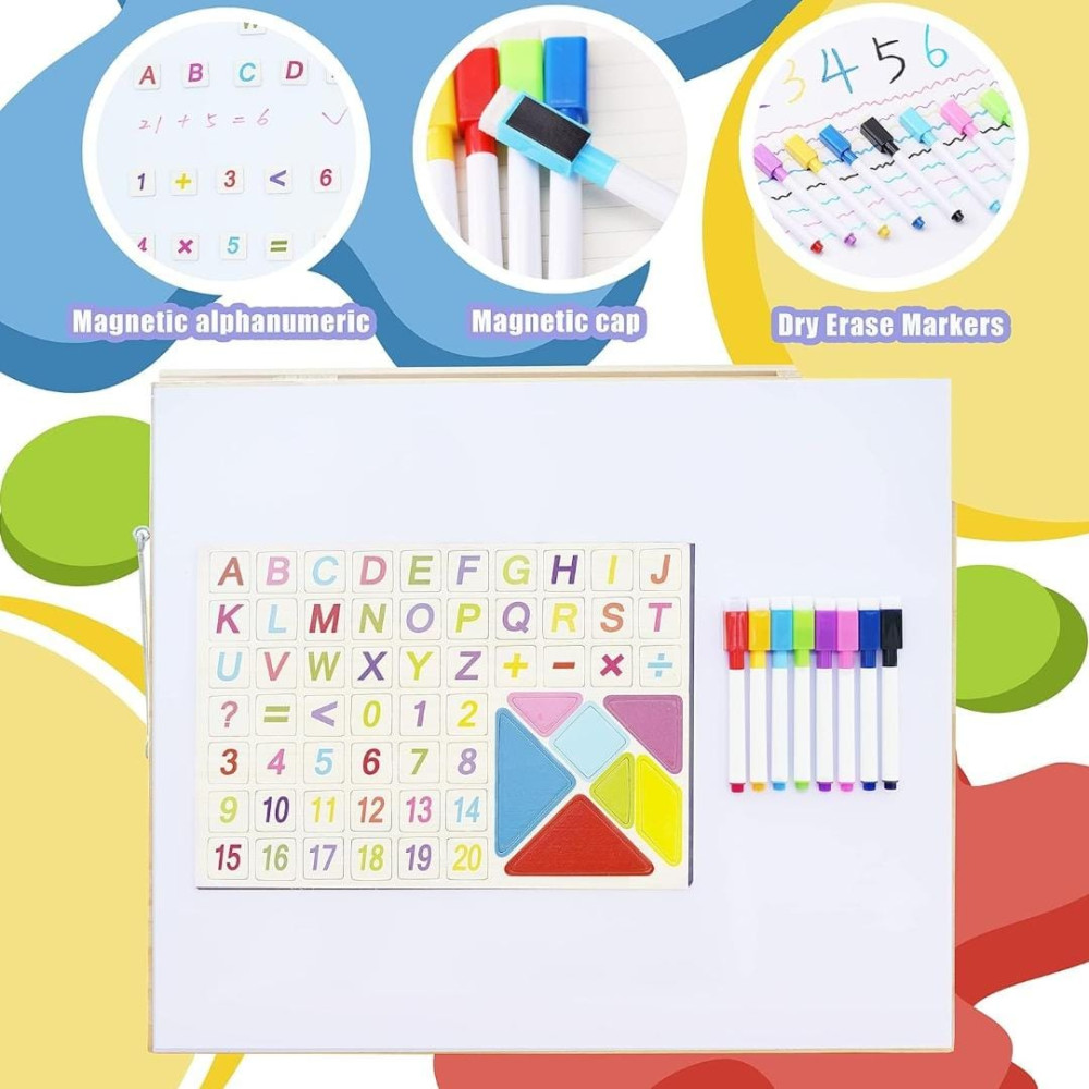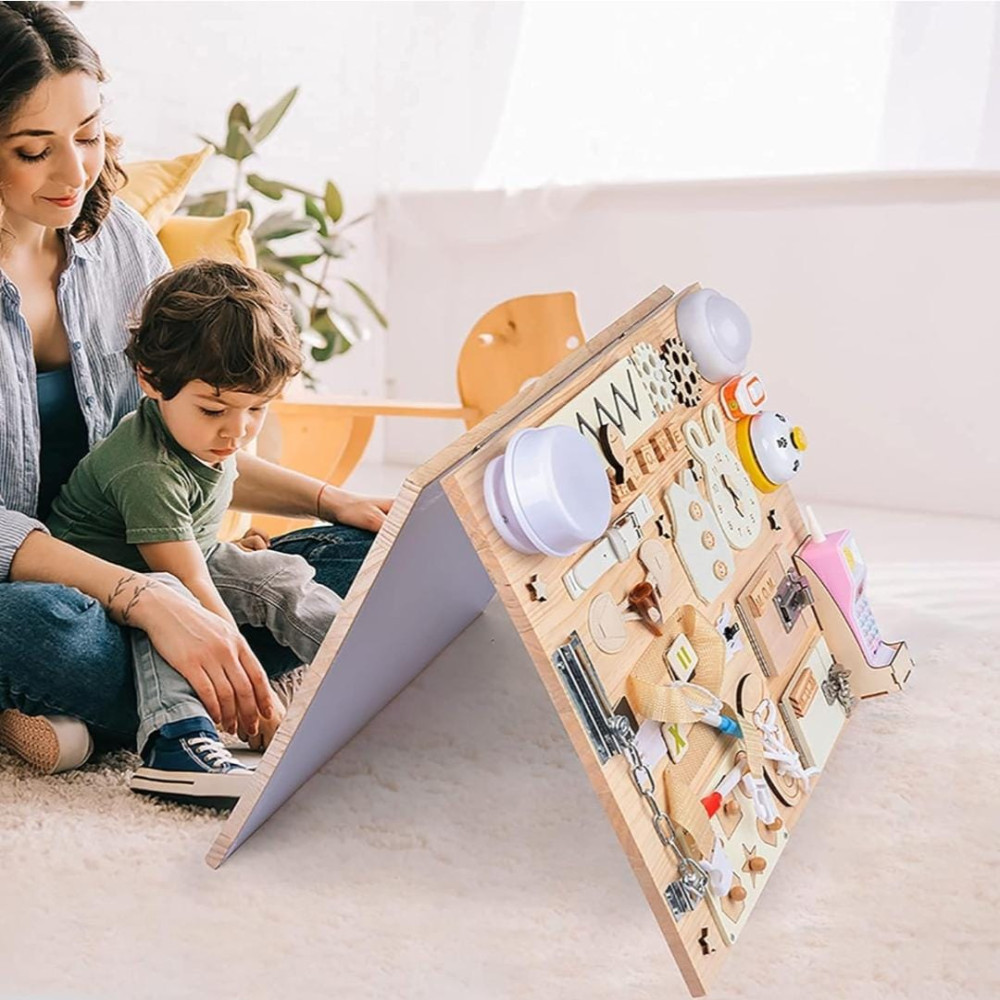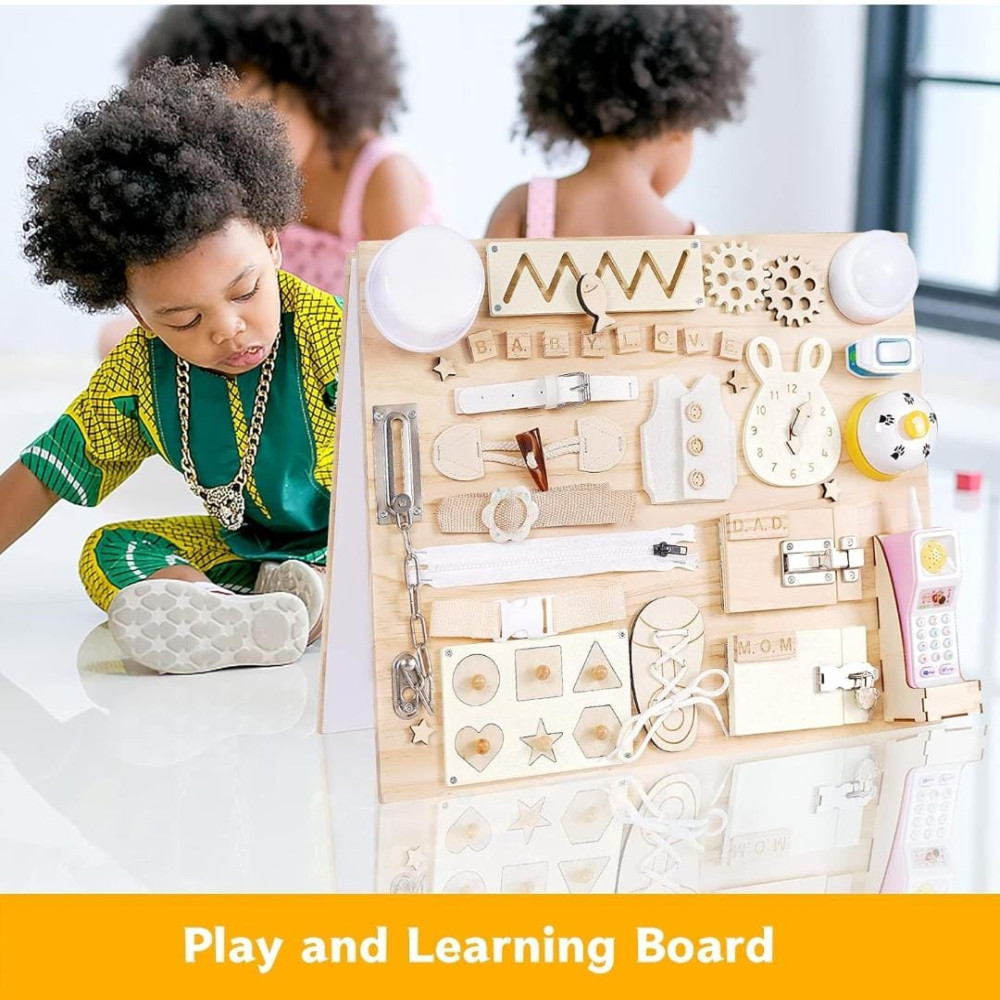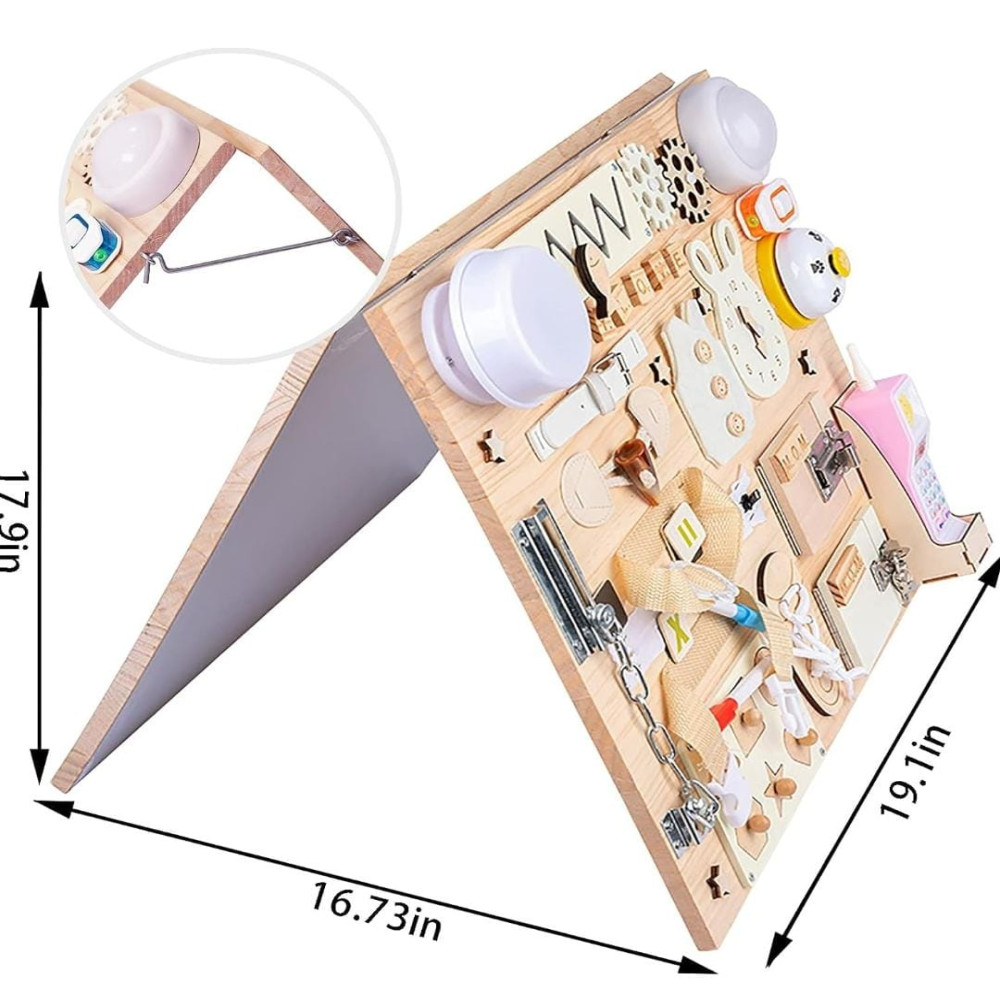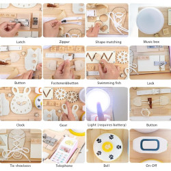 🧮Wooden Latches Board: The best way to entertain and educate your child is a sensory board with puzzles, numbers, etc. Our busy board is also equipped with a drawing board to stimulate children's drawing and cognitive abilities. 🧮Educational Toys: The board is an educational activity toy board that helps children develop flexibility when using hooks, snaps, click and slide latches. 🧮Toddler Travel Toy: Our multifunctional toy is fully assembled and weighs 9 pounds! Baby toys are very suitable for traveling by car or plane, staying at home due to isolation. 🧮Wooden Activity Toy: The surface of the board is made of high-quality wood, and the back has a foldable magnetic drawing board. Every corner is rounded and smoothly polished, so there is no sharp edge that will hurt the child's fingers. 🧮Baby Gift Idea: This beautiful busy board is a great gift for gifted children, babies and toddlers. Make it an unforgettable and surprising birthday, Christmas, New Year, Easter, Thanksgiving.