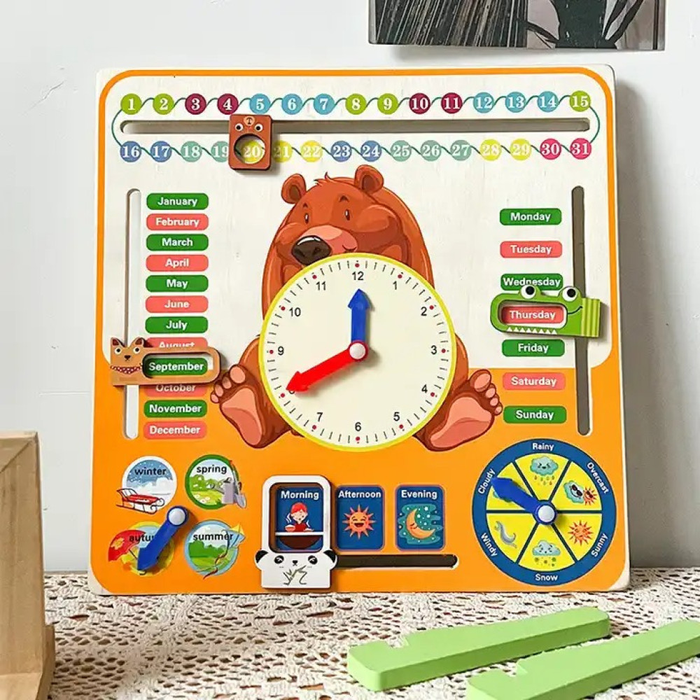π [7 In 1] Clock toys allow children to learn seasons, months, days of the week, weather and time in the most amazing and innovative way. π [Stimulates Ability] Clocks help stimulate creativity, reasoning, basic physics, fine motor skills, color recognition, handβeye coordination, and problem solving skills. π [Quality Material] Children's clock toys are made of wooden material to ensure durability and safety for children to play. π [Cute] The cute design of the clock with bright colors will attract children's attention, enhance their recognition skills and train hand eye coordination. π [Parent Child Toy] Wooden clock is an interactive digital cognitive toy for parents and children, which is good for learning to recognize time and improve social skills.